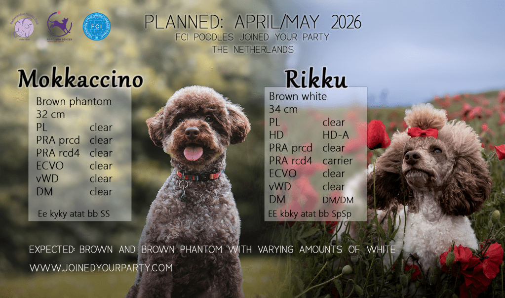 Nu alle testresultaten binnen zijn staat het eerste nest echt op de planning. De keuze is gevallen op een dwerg poedel, bruin phantom. Net ietsje kleiner dan Rikku.